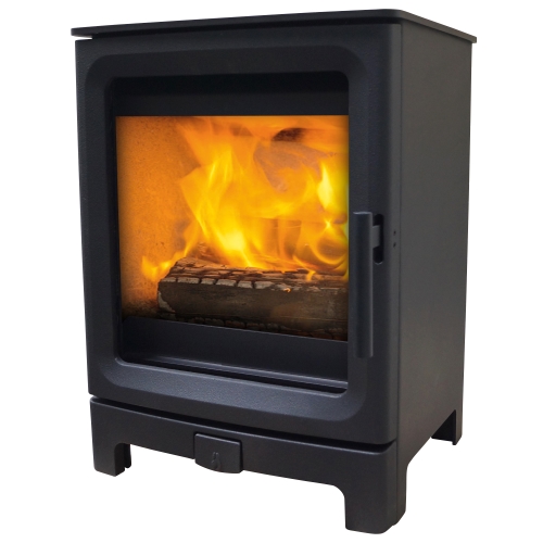A contemporary wood burning stove with clean bevelled edges and a large combustion chamber. Efficient, future-proof, easy to use with very low emissions.