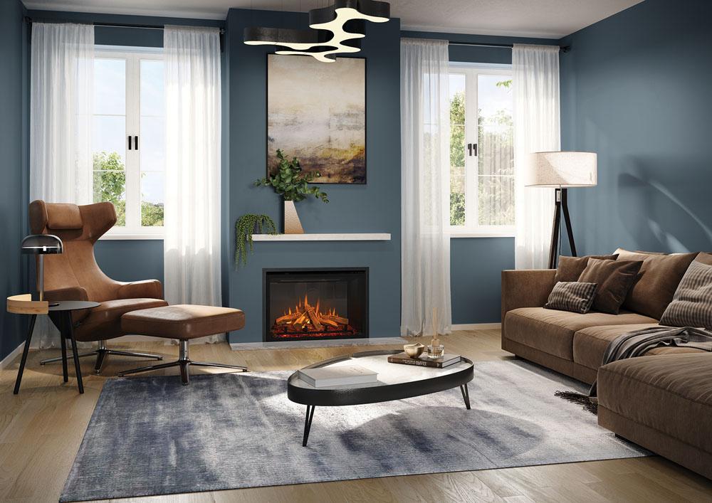 Engineered for effortless installation, the eMotiv features a tapered design and integrated 4 or 3-sided configurable frame, ensuring a smooth and seamless fit into existing fireplace openings while neatly hiding any rough edges around the opening for a polished, built-in look.
