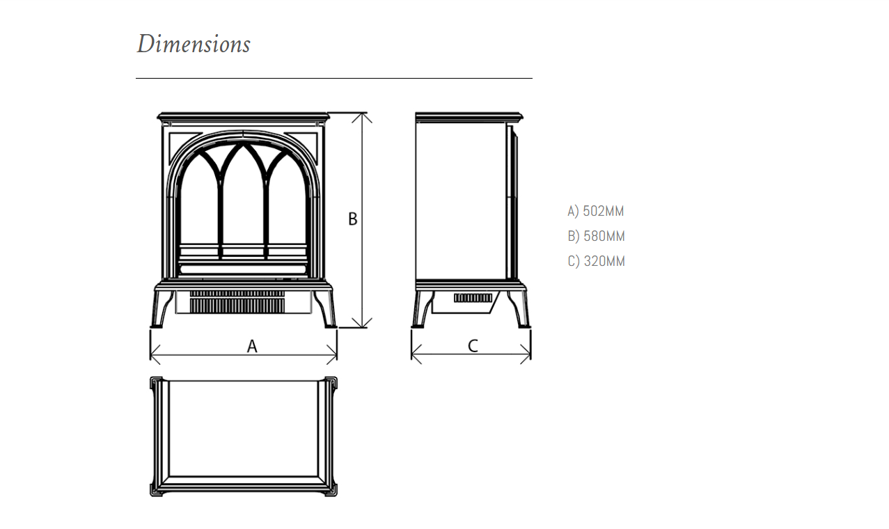 Utilizing the latest LED technology that creates an impressive realistic flame picture with glowing logs shrouded with a choice of either a contemporary clean line door or a classic tracery door design. Easy to use full remote control is standard with a manual over ride allowing on/off, heat settings, crackling log sound and flame colour / speed control at your fingertips. The appliance can also be fully controlled using an APP on your mobile phone.